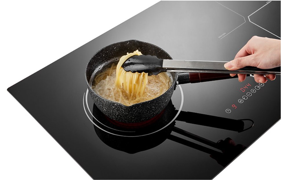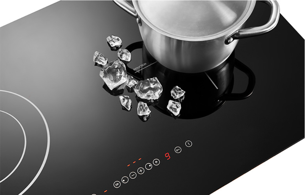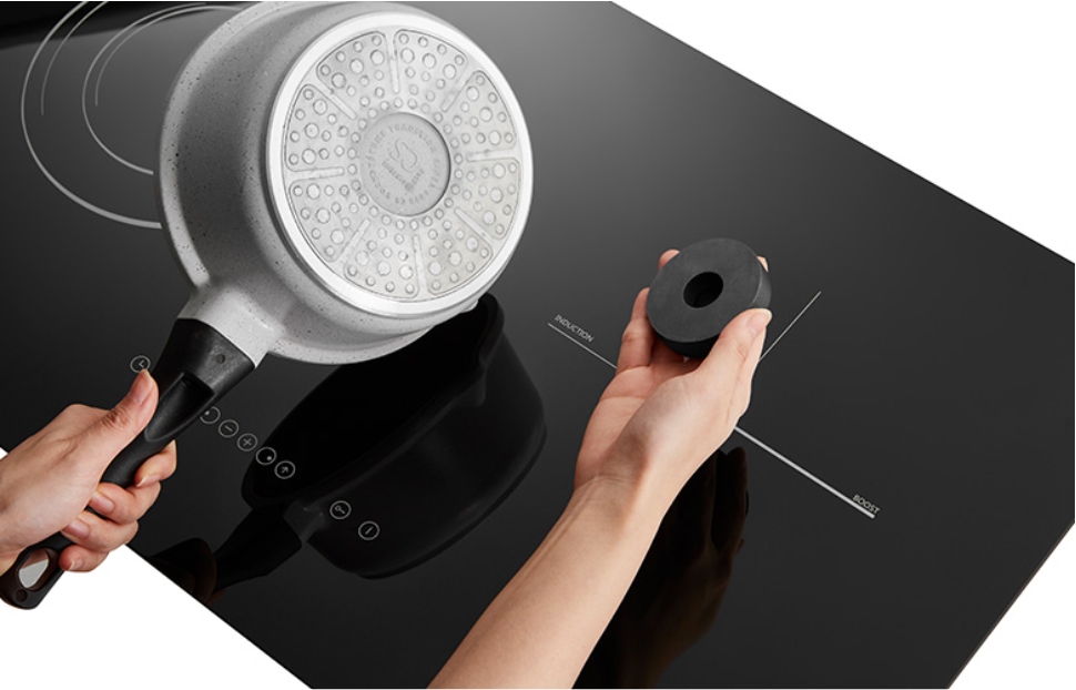 The cooking zone recognizes the size of the cookware and heats up only the base of the cookware. It also detects if the cookware is induction suitable or not properly placed on the cooking zone.