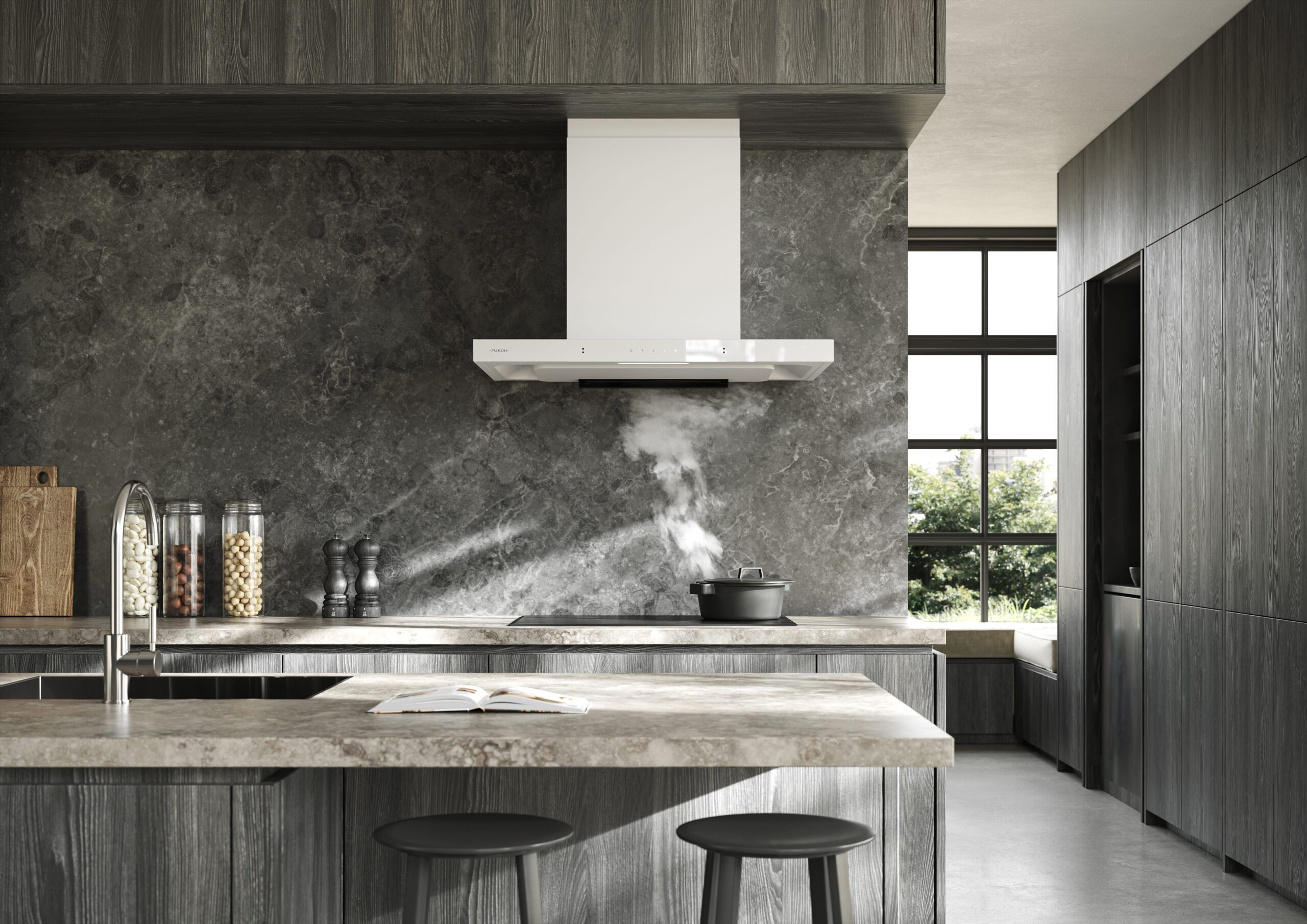 Modern and intuitive way to command the cooker hood with minimal effort, even with greasy-fingers.
