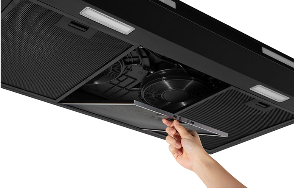 The mesh filters captures particles of grease, keeping the kitchen free of oily fumes, and it can be easily taken out to wash.